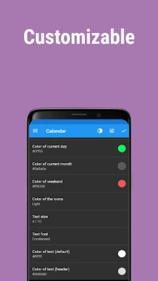 Two minimalistic, fully customizable, and resizable widgets - agenda (list) and month (grid) - offer you a quick glance at your daily schedule directly on your home screen. The widgets can display events from Facebook, Google, or Outlook calendars.