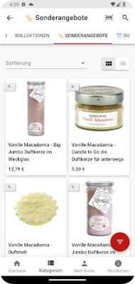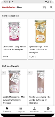 Mit unserer App kannst du unser riesiges Angebot an Duftkerzen und Accessoires durchstöbern und deine Lieblingsdüfte mit nur wenigen Klicks nach Hause holen. Finde alte Favoriten, entdecke neue Aromen und mach dein Zuhause zu deiner persönlichen Wohlfühloase. Duftkerzen sind mehr als nur ein schönes Accessoire - sie sind der Schlüssel zu einer entspannten Atmosphäre und gutem Raumduft.