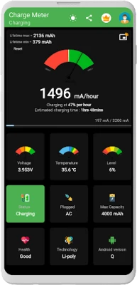 We're a Team with a focus on quality and passion for battery statistics. Charge Meter doesn’t require access to privacy-sensitive information and doesn't make false claims. If you like our app, support us by upgrading to the Premium version.