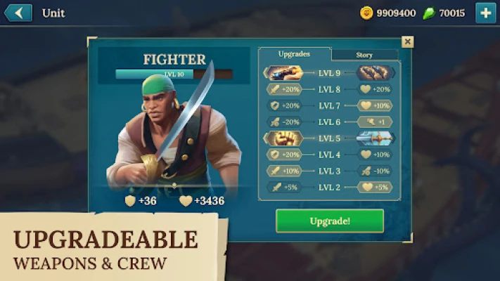 Take part in ongoing events with exclusive rewards: fight in the Colosseum, join the Faction War, attack Convoys and compete in tournaments for the most skilled pirates.